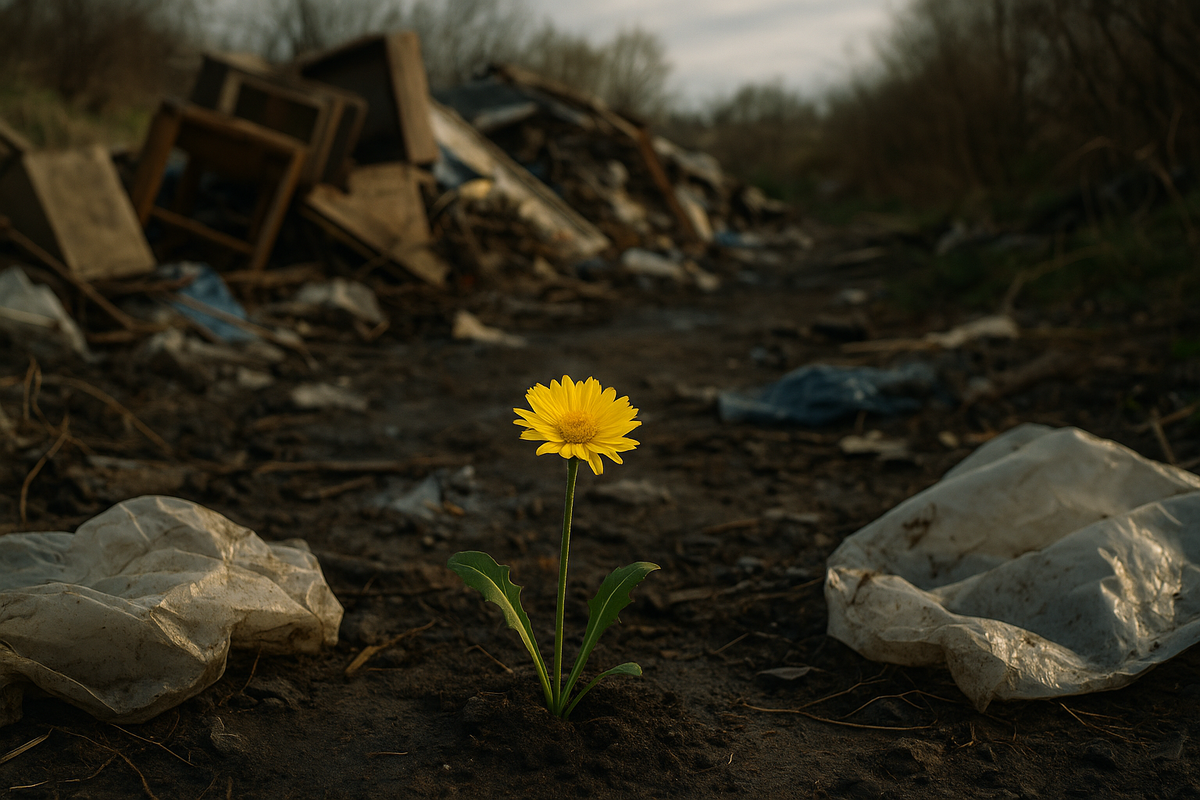 А люди… Людям иногда достаточно одного маленького жёлтого цветка на мусорке, чтобы вспомнить: никакая внутренняя свалка не отменяет того, что в глубине всё ещё есть место для света. Нужно только позволить ему прорваться сквозь все слои старого мусора и однажды — не спрашивая разрешения, не ожидая идеальных условий — просто вырасти.