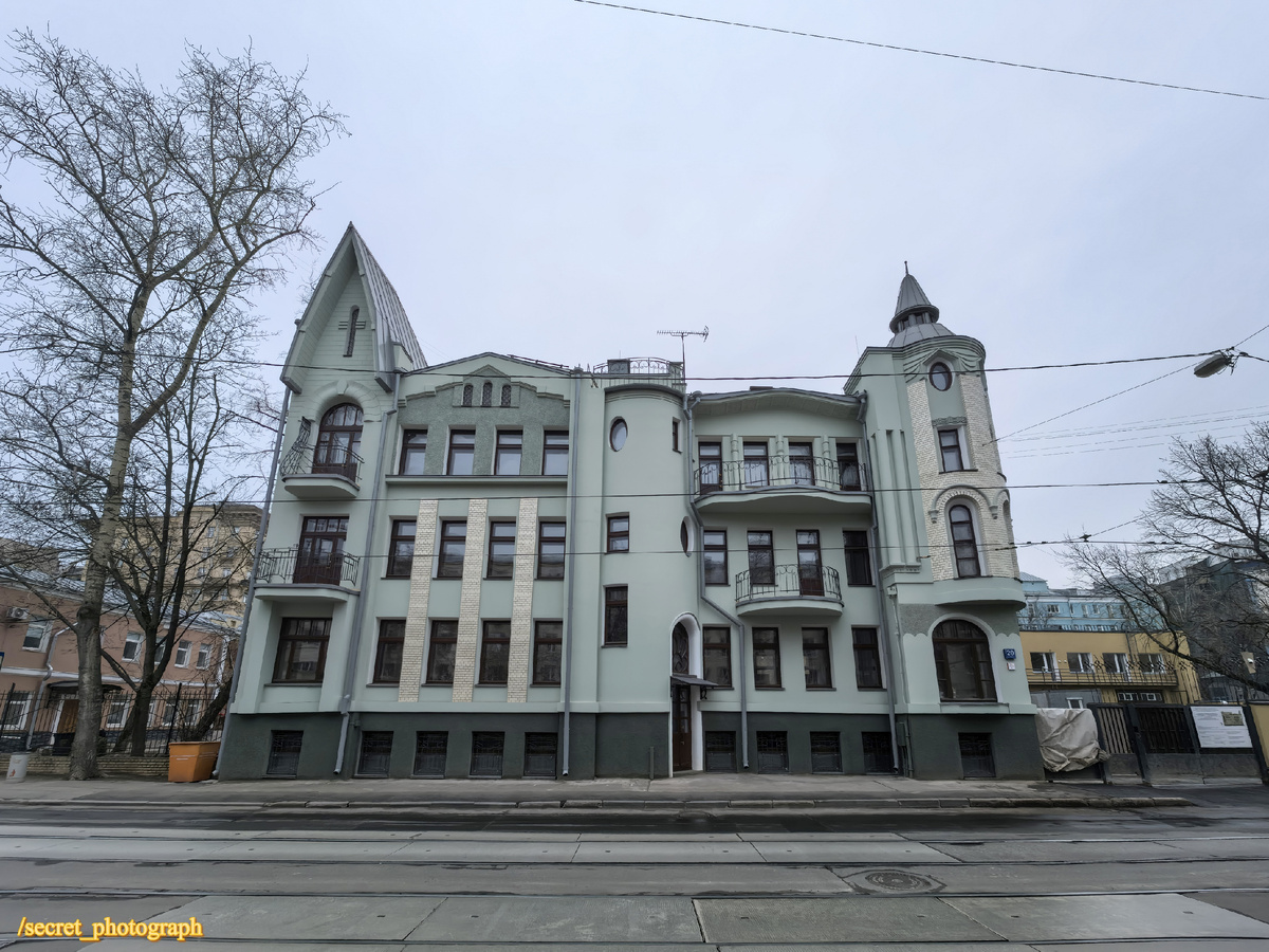 На время покидая проспект Мира и старинную Мещанскую слободу, на один день вернусь на улицу Гиляровского. Об этом доме, похожем на средневековый замок, я хотел рассказать еще летом, когда целых три недели гулял по этим местам, рассматривая архитектурные красоты и исследуя их истории. Но тогда дом стоял на реставрации, частично закутанный в сетку, и вот теперь он является взгляду во всей своей красе. Хотя, похоже, внутренняя отделка и оформление дворовой территории еще продолжаются. К слову сказать, вам ничего не напоминает этот дом в стиле северного модерна? Никакое другое здание, о котором я уже писал однажды? Честно говоря, я и сам бы не вспомнил, но другие авторы напомнили про особняк наследников Николая Циркунова в Чистом переулке. Взглянул – и правда, головоломка из серии «Найди десять отличий». И это немудрено. Ведь и дом Циркуновых, и доходник пианистки Екатерины Дмитриевны Ломакиной, выпускницы Московской консерватории, супруги писателя Николая Павловича Ломакина (которого