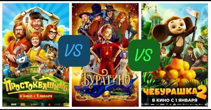 В январе не вылезаем из кинотеатра! Целых три фильма которых стоит посмотреть на новогодние праздники. Чебурашка-Буратино-Простоквашино.