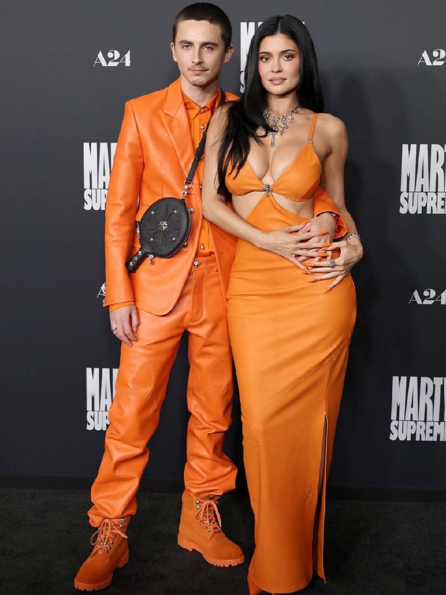 Один выход — сразу два заявления. Кайли Дженнер и Тимоти Шаламе на премьере «Марти Великолепный» в Лос-Анджелесе не только опровергли слухи о расставании, но и лишний раз подтвердили: оранжевый — хит сезона. Оба — в Chrome Hearts.