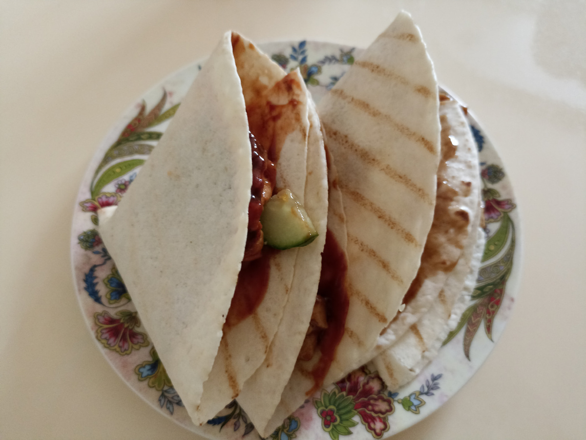 Добрый, добрый день! С вам на канале Ольга_РА. Это блюдо любят готовить мои дети. В эпоху фастфуда стали доступны многие продукты, из которых можно приготовить всё, что угодно, что раньше нам и не снилось. Нам привычнее пирожки, вафли, хворост, чебуреки. Нынешнее поколение предпочитает шаурму, гирос, картофель- фри, хот- дог, пиццу, роллы. Это ни хорошо ни плохо, просто всё постоянно меняется в этом мире. Сын научился готовить шаурму на уроках труда. У них по технологии преподаватель женщина, поэтому проходят кулинарию. Мужчины -трудовика к сожалению нет и никто теперь не научит столярному мастерству и паяльному делу. В принципе, и приготовление еды в жизни пригодится, тоже неплохо. Может шеф- поваром станет? Берём куриную грудку, нарезаем небольшими кубиками, солим и обжариваем на сковороде с соусом "Терияки" . Других специй нам не потребуется. Дополнительно режем помидоры, огурец, лук репчатый. Когда куриная грудка будет готова, добавляем нарезанные овощи и равномерно размешивае