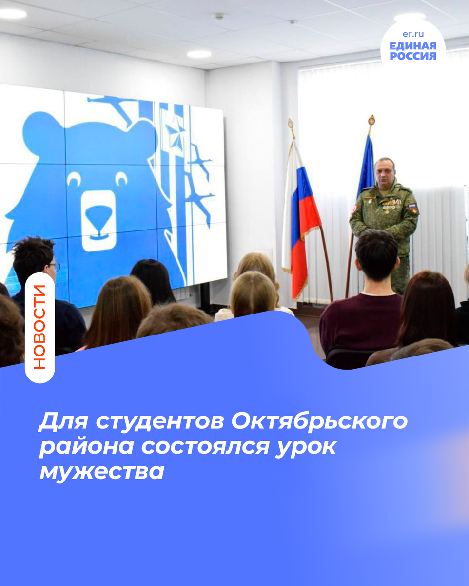 Для студентов СГТУ имени Гагарина Ю.А. патриотический урок провёл член местного политсовета Октябрьского местного отделения партии «Единая Россия», ветеран специальной военной операции Олег Мысов.