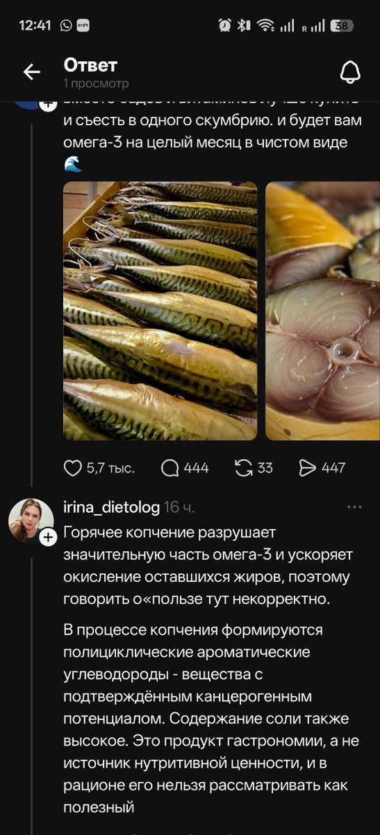 Вчера в тредс обычная скумбрия вызвала ХОЛИВАР: вполне уважаемый диетолог начала пугать раком и малым количеством омеги, в итоге обвинила