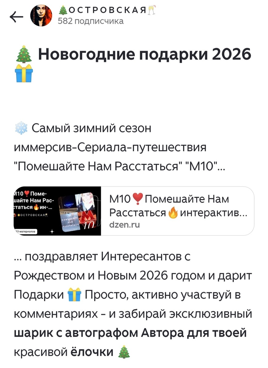 Новогодний фестиваль 2026 не состоялся в связи с отсутствием Интереса публики. Эфиры выходят только по заказам, заказов 0. Очень захотелось порадовать себя новогодним настроением - выпустила эфир авансом, за сутки 1 просмотр (мой собственный) и по-прежнему 0 заказов и 0 просмотров, как всегда. Эфир удалён за невостребованностью. Шарик дарю себе, больше некому. Спасибо мне! Акция не состоялась - за год 0 участников. ⚠️ Комментарии на канале отключены. Общение доступно только в Салоне: