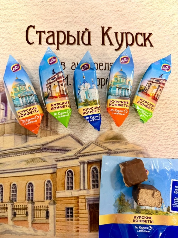 О возрождении некогда одних из самых любимых конфет «Курские» стали говорить не так давно. И вот сладости появились в продаже. Те, кто их попробовал, замечают, что с легендарным вафельными конфетами у них нет ничего общего. Директор турфирмы «Спутник» Владимир Конев устроил дегустацию. Его вердикт — такие конфеты в подарок он никому не повезет. И уж тем более в Беларусь. «Опозоримся!» — объяснил он. Конев рассказал, что купил десять конфет в фирменном магазине. Стоят они 608 рублей за килограмм. «Производители пообещали, что такой сувенир не стыдно будет подарить друзьям в других городах, да и гости Курска наконец-то увезут вкусный кусочек курской души», — говорит руководитель турфирмы. Владимир Конев признал, что выглядят конфеты достойно: яркие обертки с видами города. Но огда попробовал их на вкус, расстроился. «Конфета с той, легендарной, ничего общего не имеет. Это не та, в которой сначала отделяли вафельки и съедали до последней крошки. Это шоколадная конфета с однородной начинко