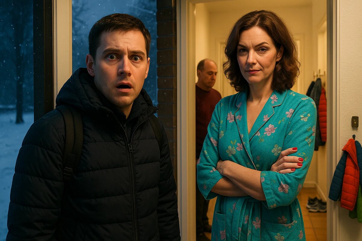 Щёлкнул замок. На пороге — незнакомка в халате с цветочным принтом, волосы волнами, маникюр свежий. Улыбка фальшивая, глаза ледяные.