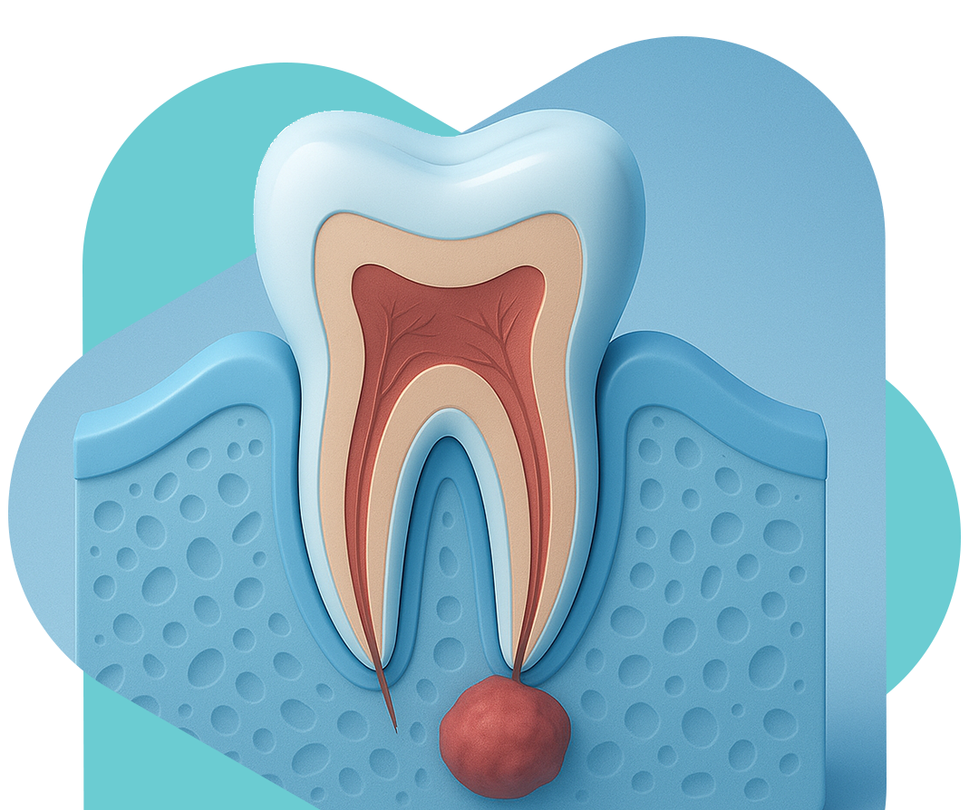 Незаметные воспаления в корне зуба могут влиять на всё тело — от головных болей до проблем с ЛОР-органами. Главное — не ждать, пока заболит, а вовремя прийти к стоматологу. Что это такое Гранулёма и киста — это очаги воспаления у корня зуба, чаще всего возникающие из-за инфекции в канале. Когда бактерии проникают за пределы корня, организм пытается защититься — вокруг очага образуется плотная капсула. Пока воспаление «спит», человек может не ощущать ничего, кроме лёгкого дискомфорта во время приёма пищи. Но со временем инфекция начинает распространяться дальше — и тогда могут появиться: боли при накусывании на зуб; припухлость в области десны; головные боли и слабость; проблемы с гайморовой пазухой. Именно поэтому гранулёма и киста нередко становятся «скрытой» причиной хронических заболеваний. Почему возникает гранулёма Главная причина — проникновение бактерий за пределы корневого канала. Это может случиться при осложнённом кариесе, после некачественного лечения, а также при использов