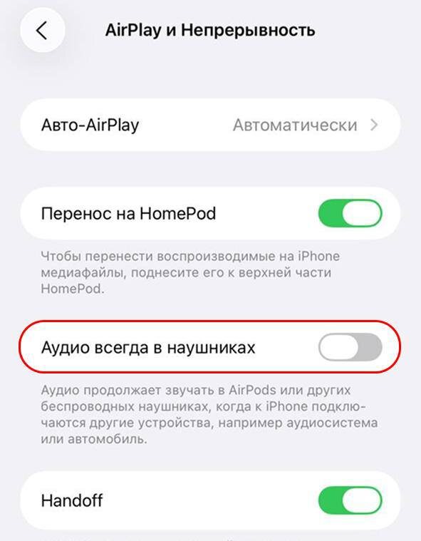 В iOS 26 добавили функцию, которая не дает перехватывать звук из AirPods. Как включить: – Настройки; – AirPlay и Непрерывность; – Аудио всегда в наушниках. Больше не будет такого, что музыка вдруг заиграет в колонках машины.