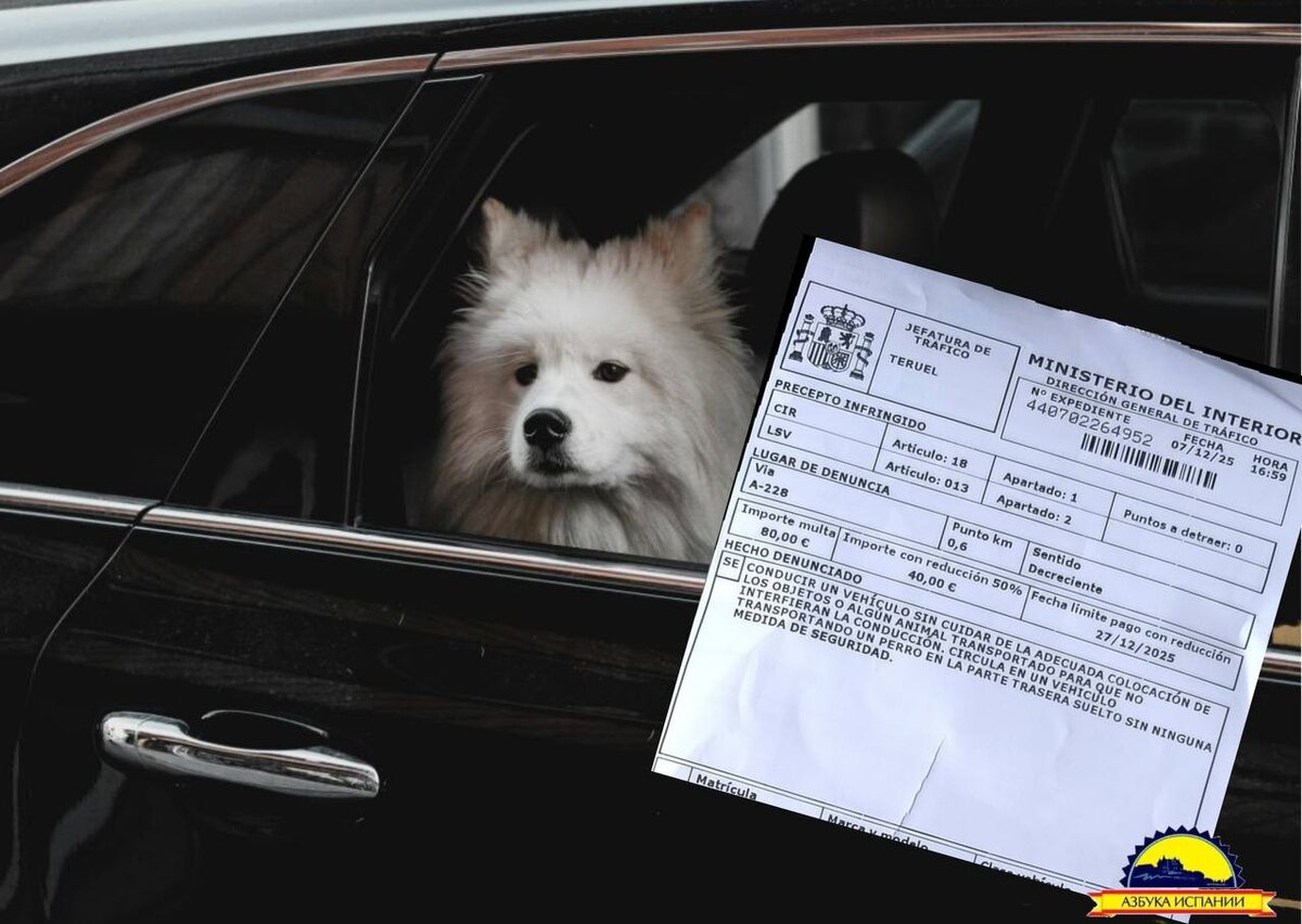 ❗️Штраф DGT от 80 до 200.000 € за неправильную перевозку собаки в автомобиле Всё чаще можно увидеть опасную и неправильную ситуацию: собака едет в машине без каких-либо удерживающих систем, свободно перемещаясь по салону или выглядывает из окна на переднем сиденье. Такая перевозка опасна и штрафуется как по Правилам дорожного движения, так и по Закону о благополучии животных. ♦️Что требует закон DGT и Закон о благополучии животных обязуют перевозить питомцев только с использованием систем безопасности, таких как: - двойные удерживающие ремни (арнесы), - сертифицированные защитные решётки, - транспортные переноски (transportín). Это необходимо, чтобы избежать: - помех управлению, - травм животных, - угрозы для остальных пассажиров в случае резкого торможения или аварии. 🔹Какие штрафы могут применяться согласно Reglamento General de Circulación (RGC) — Общий регламент дорожного движения. Статья 18.1 - Животное в машине без помех управлению: штраф 80€ (со скидкой в 50% - 40€) - Жив