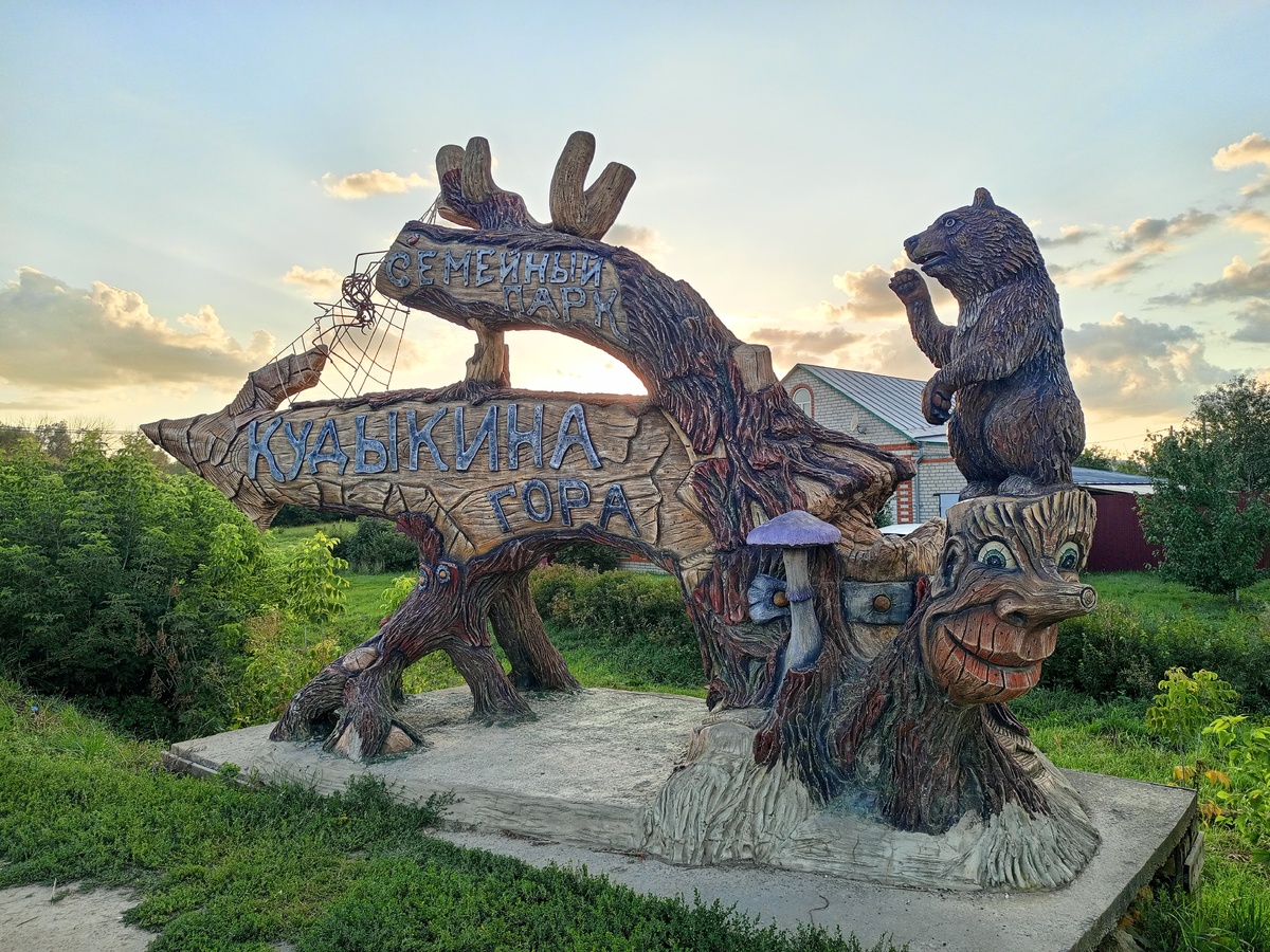 Путешествуя по городам, я всегда обращаю внимание на интересные вывески, названия мест, которые посещаю, магазинов, музеев. Ох, где я только не была, и на Кудыкиной Горе, и в Тигулях, и в Глухомани. ))))) Частенько я собираю коллекцию из необычных названий в каждом городе, буду делиться с Вами своими подборочками. Сегодня будет такая небольшая обзорная статья , покажу Вам места с забавными названиями, где была я , а Вы в комментариях пишите, где были Вы. Первое место в моем списке занимает Парк с необычным названием "Кудыкина гора" , который расположен в Задонском районе Липецкой области. Что же обозначает выражение "Кудыкина гора"? 👀Происходит от русского слова кудыка (образование от наречия куды) — человека, спрашивающего охотника, куда тот направляется. По народному поверью делать это строго воспрещается, поэтому в ответ этому человеку охотники обычно говорят: на кудыкину гору, на кудыкино поле, на кудыкин остров ✔Согласно словарю Даля, словосочетание кудыкать кур означает «с