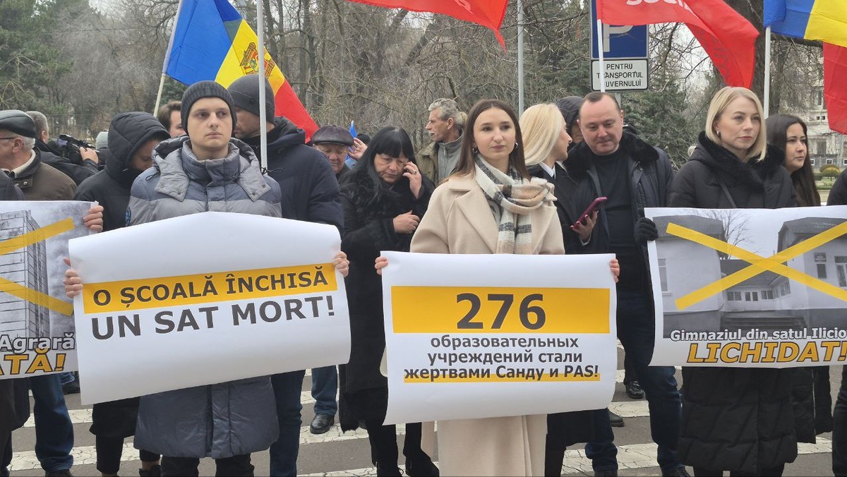 ☝️😒Активисты ПСРМ вышли на акцию протеста против закрытия школ в стране.