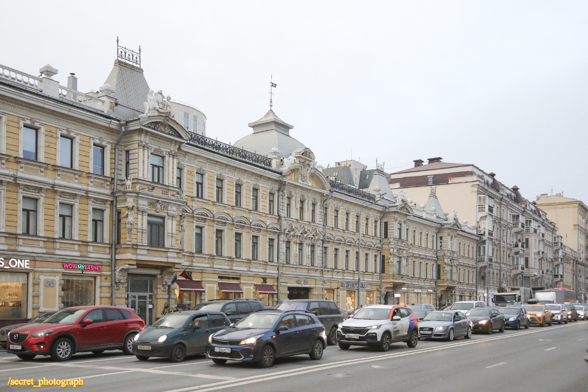Я уж не говорю о бесчисленных маскаронах и лорелеях, о скульптурных львах, орлах, грифонах, летучих мышах и прочих химерах. Впрочем, грифоны со львами как раз таки повстречаются в сегодняшней моей заметке. А рассказ в ней будет касаться дома, стоящего в самом начале проспекта Мира – улицы, до 1957 года называвшейся Первой Мещанской…