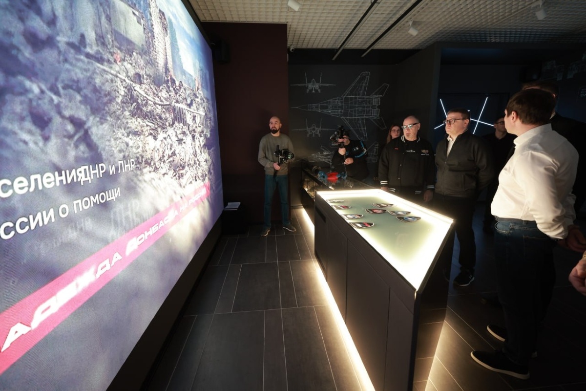https://t.me/chgub В день открытия Алексей Текслер и глава города Алексей Лошкин осмотрели экспозицию, познакомились с интерактивными и образовательными зонами, а также пообщались с кадетами, пришедшими на экскурсию. Экспозиция музея, расположенная на площади более 500 квадратных метров, подробно рассказывает о причинах, целях и ходе специальной военной операции, помещая события в широкий историко-политический контекст. Большое внимание уделено вкладу Челябинской области в проведение СВО и восстановление новых российск