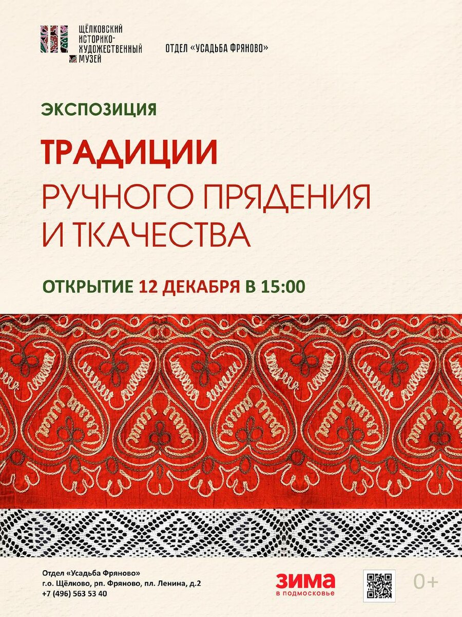 Новая экспозиция в усадьбе Фряново — «Традиции ручного прядения и ткачества» 🪡 На экскурсии вы узнаете, как работает веретено и самопрялка, увидите в деле старинный ткацкий станок и сможете проследить весь путь создания ткани. 🐱 А если захочется попробовать самим — приходите на мастер-классы. Они проходят регулярно и подходят как взрослым, так и детям. 🧵 Интересный факт: на северо-востоке Подмосковья археологи находили фрагменты шерстяной ткани в курганах кривичей XI–XIII вв. В этот период вертикальные ткацкие станки уступали место горизонтальным, более совершенным механизмам. Для ткачества поясов и тесёмок использовались специальные бёрдышки и деревянные дощечки с отверстиями по краям. 📍 Открытие: 12 декабря в 15:00. #культуращёлково #усадьбафряново #зимавподмосковье