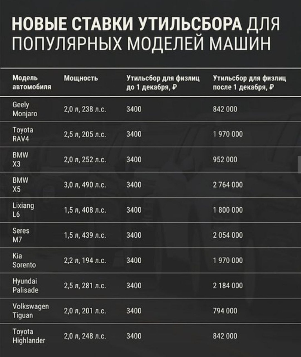 ℹ️Утильсбор‑2026. Новость, о которой не слышал только ленивый. Привет, автолюбителям . С 1 декабря правила расчёта утилизационного сбора обновились.Конечно, не в сторону удешевления.🙄 Утильсбор - это "плата за будущее": деньги на переработку авто после эксплуатации. Платят производители, дилеры, импортёры… а по факту - покупатель (сумма заложена в цену). С 1 декабря утильсбор стал хитрее - теперь он смотрит не только на объём двигателя, но и на его мощность. Как было раньше? До 1 декабря ставка зависела от: ▫️ объёма двигателя; ▫️возраста авто. Например: ▫️ для личных авто до 3 л и младше 3 лет - 3 400 ₽; ▫️старше 3 лет - 5 200 ₽. Для коммерческого транспорта суммы были куда серьёзнее - до 2,8 млн ₽. Что изменилось с 1 декабря? Теперь ключевой фактор — мощность двигателя. 🛍 Льготная ставка сохраняется только для авто: 💛с двигателем до 3 л; 💛 мощностью до 160 л. с. Примеры: Toyota Corolla, Honda Vezel, Volkswagen Tharu, Mazda CX‑5. ❌ Коммерческая ставка (миллионы рубл