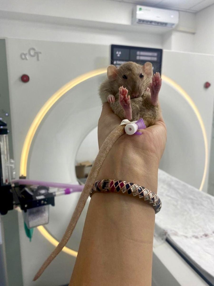 Милый крыс забегал к нам на проведение компьютерной томографии.