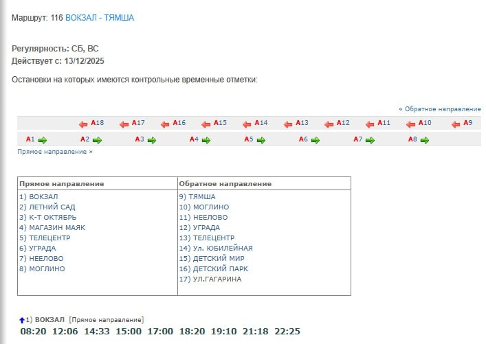 Расписание движения автобуса № 116 Вокзал-Тямша изменится в Пскове с 9 декабря