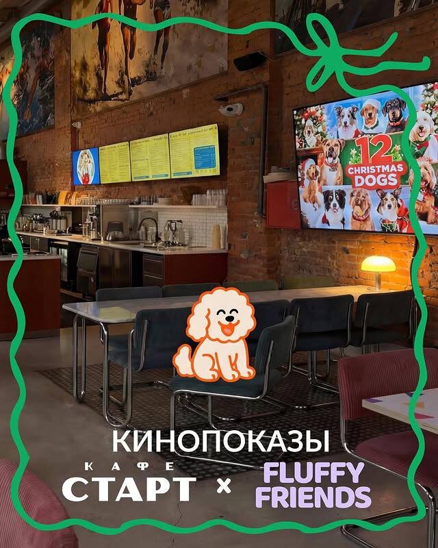 В Старт кафе в декабре покажут фильмы про собачек🐾 Это коллаба кафе Старт и магазина товаров для собак Fluffy friends. Для зрителей ребята предусмотрели фильтр-кофе, чёрный или зелёный чай при любом заказе, а для домашних животных — небольшой вкусный подарок от Fluffy friends! Всего будет три фильма: 🔴10 декабря в 20:00 — «Все псы попадают в рай» 🔴14 декабря в 20:00 — «Собачья жизнь» 🔴19 декабря в 20:00 — «12 рождественских собак» Организаторы просят оставить питомцев дома: громкие звуки и большое количество людей могут нагрузить нервную систему собачек, особенно в предновогодний период! Вход свободный 📍Газовая, 10