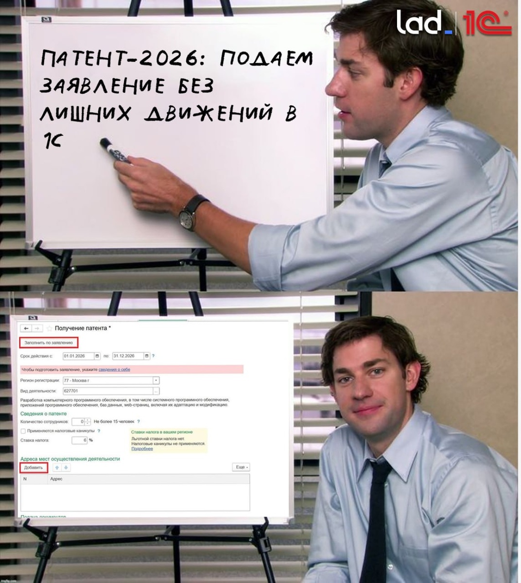 ☝️Патент на 2026: время действовать, а не откладывать Если вы работаете на патенте — декабрь как раз тот момент, когда лучше всё оформить заранее и без спешки. Что изменилось и чем это удобно 👇 Начиная с версии 1С:Бухгалтерии 3.0.184 программа умеет продлевать патент на основе предыдущего заявления. Без повторного ввода данных и лишней рутины — бухгалтеры это оценят 😎 Важный нормативный момент: 📌 По Федеральному закону № 425-ФЗ от 28.11.2025 предельная выручка для применения патентной системы в 2026 году — 20 млн руб. Как оформить патент в 1С: 1️⃣Раздел Отчёты → Регламентированные отчёты → Уведомления 2️⃣Создаём новое заявление на патент 3️⃣Нажимаем «Заполнить по заявлению» — подтягиваются прошлые данные Перед отправкой можно спокойно проверить и откорректировать: 🔡период действия патента 🔡 вид деятельности 🔡 количество сотрудников 🔡 адрес ведения деятельности 🔡 право на льготную ставку или налоговые каникулы 📤 Если подключена 1С-Отчётность, заявление отправляется прямо