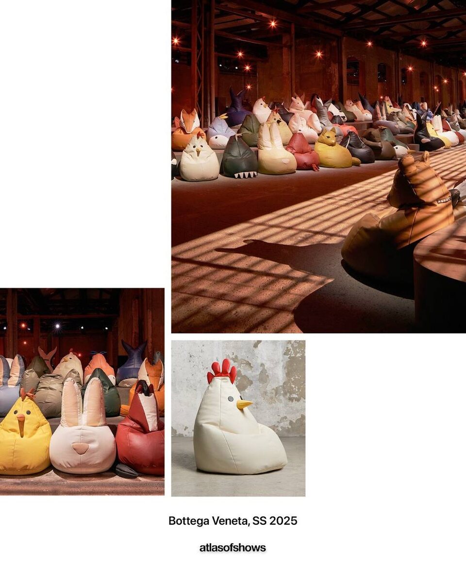 Шикарная подборка стульев с показов 2025 года Очевидное-невероятное, что нудно взять на заметку на будущее. 🚩очень дорого Эра смартфонов коренным образом изменила подход к дизайну мебели для показов. Когда любая деталь может оказаться в соцсетях, бренды уделяют особое внимание всему, что попадает в кадр. Стулья стали объектом искусства — их создают из разнообразных материалов, а некоторые дома, как Bottega Veneta, даже отдельно продают эти коллекционные предметы.