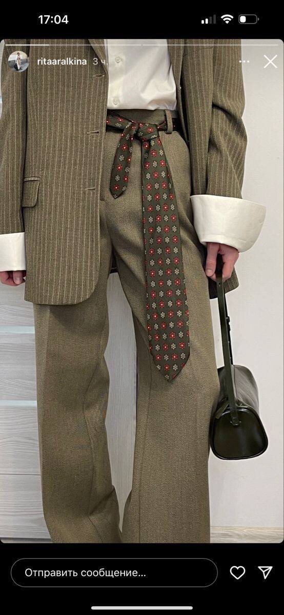 Галстук на поясе🙌🏼 Галстуки по-прежнему актуальны!) И если в вашем гардеробе есть такой аксессуар, то смело носите его не только на шее😉 Попробуйте завязать галстук на поясе❤️ Например, проденьте через шлевки джинсов / брюк или завяжите на талии поверх пиджака!) Этот прием отлично подойдет для тех, кто любит экспериментировать🥰 Носите так галстук? Другие стилистические приемы: 👉🏼Букле в образе 👉🏼Пуховой платок 👉🏼Вязаный костюм 👉🏼Цветные носки 👉🏼Цветные брюки ❤️🔥Все посты со стилистическими фишками вы найдете по тегу: #MLстилистическиеприемы