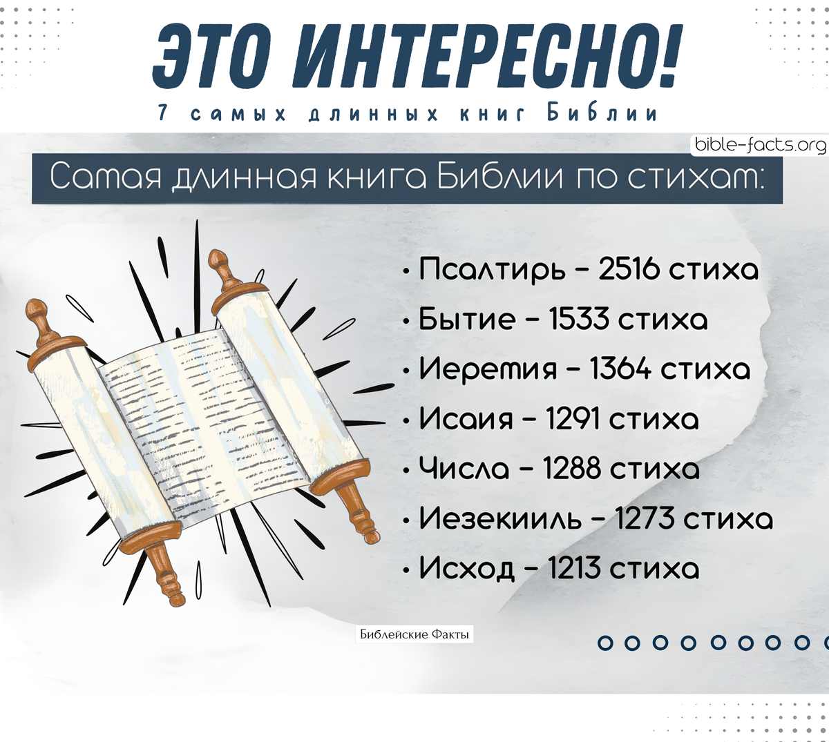 Количество стихов дано по Синод. переводу 1876 г., в других изданиях может немного отличаться. • Телеграмм канал (Библейские факты) • Больше интересных Библейских Фактов (VK) • Библейские факты (сайт)