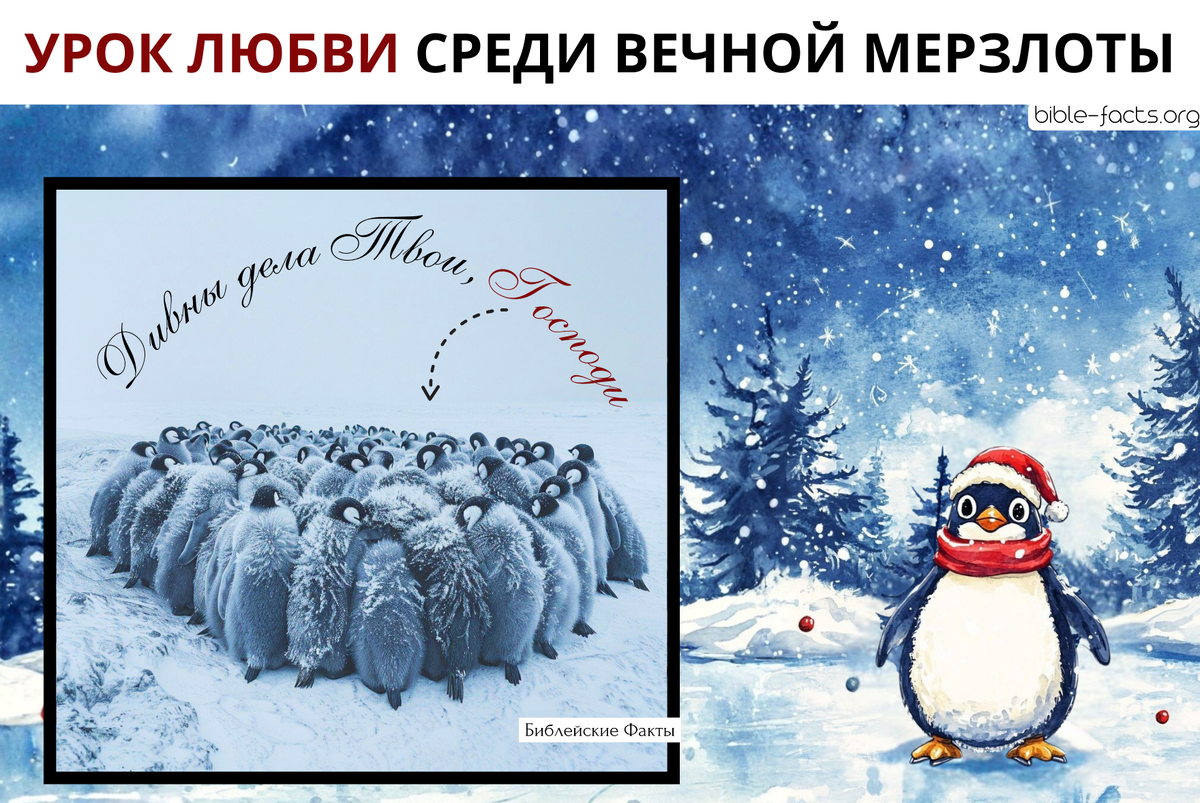 УРОК ЛЮБВИ СРЕДИ ВЕЧНОЙ МЕРЗЛОТЫ Представьте место, где жизнь кажется невозможной: Антарктическая зима, температура падает ниже -40°C, а пронизывающий ветер срывает с ног. Одиночка здесь обречен. Но Бог вложил в Свое творение удивительный инстинкт спасения. Императорские пингвины собираются в плотный круг. Тысячи птиц стоят плечом к плечу, спинами к ветру. И происходит чудо: Пока снаружи бушует шторм, в центре этого живого круга температура поднимается до +35°C! Но ещё важнее не тепло тел, а закон взаимной поддержки, вложенный Дивным Творцом в сердце Его творения. Пингвины постоянно движутся. Те, кто согрелся в центре, постепенно дрей1фуют к суровому краю, подставляя свои спины ледяному ветру, чтобы пустить в тепло замерзших братьев. Это живая иллюстрация того, к чему призвал нас Господь. Эти птицы исполняют этот закон буквально. Жертвуя своим комфортом, они спасают жизнь ближнему. Глядя на это, невозможно не сказать: дивен Бог в делах Своих.