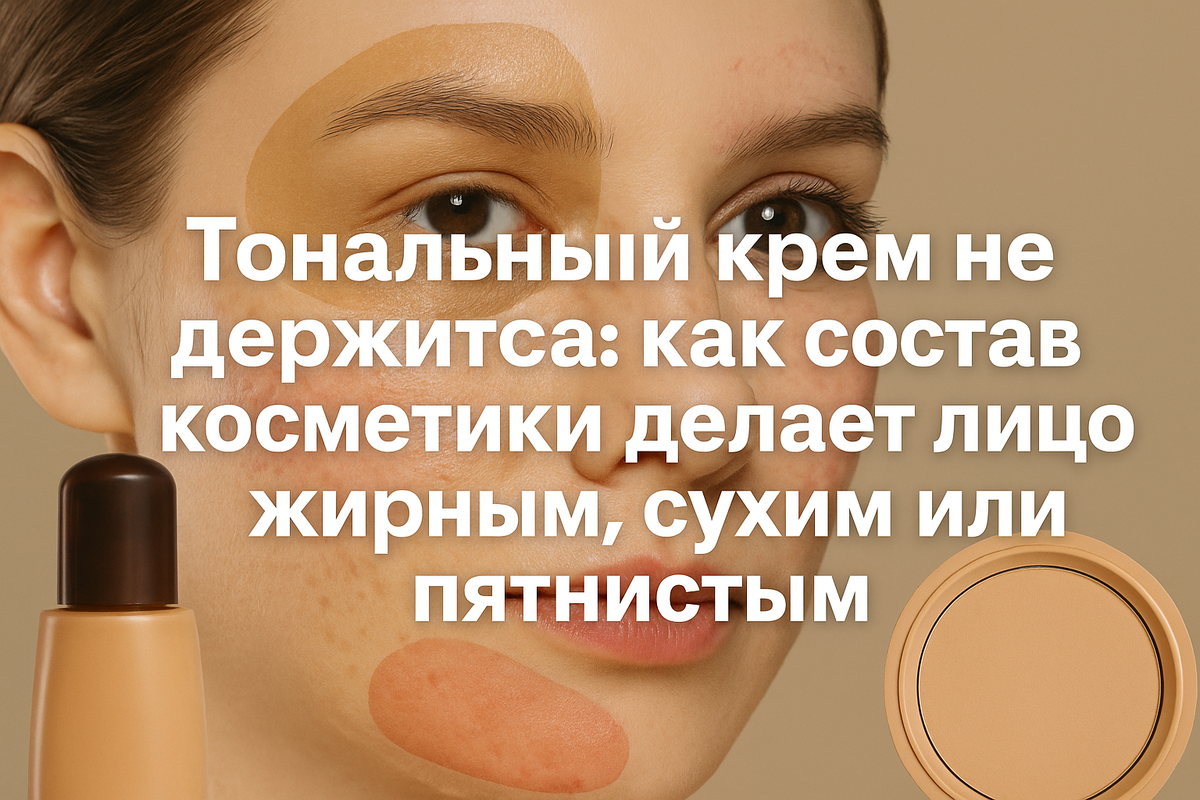Утром вы ровно наносите тон, а через пару часов в зеркале: жирный блеск, пятна на носу, сухие островки на щёках и провал в зоне подбородка. Кажется, что кожа «капризная» и «никакой тональный крем не держится». На самом деле очень часто виноват не вы и даже не техника макияжа, а конкретный состав косметики. Почему лицо становится жирным, сухим или пятнистым 1. Спирты и агрессивные подсушивающие компоненты Во многих тональных основах до сих пор есть спирты и сильные подсушивающие вещества.