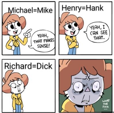 Почему имя Richard сокращают до Dick, это же ругательство? А всё благодаря средневековой английской традиции рифмованных прозвищ. В XII-XIII вв. Richard укорачивали до Rick, а затем, следуя моде на рифмованные варианты, Rick превратился в Dick. Возможно, под влиянием того, как англичане воспринимали французское раскатистое R норманнов. Dick стал настолько распространённым, что со временем превратился в нарицательное обозначение любого мужчины - как позже Tom, Jack или Harry. Выражение every Tom, Dick, and Harry (каждый встречный-поперечный) означает кто угодно, любой человек и используется с середины XVII в. В 1665 г. в сатире «Английский мошенник» dick уже использовалось как сленг для обозначения мужчины в качестве сексуального партнёра. Словарь сленга 1869 г. определял dick как хлыст для верховой езды и аббревиатуру слова dictionary (отличное прозвище для особо увесистых словарей с мелким шрифтом). 🤬 Вульгарное значение слова dick появилось только в 1880-х гг. (подозревают англи