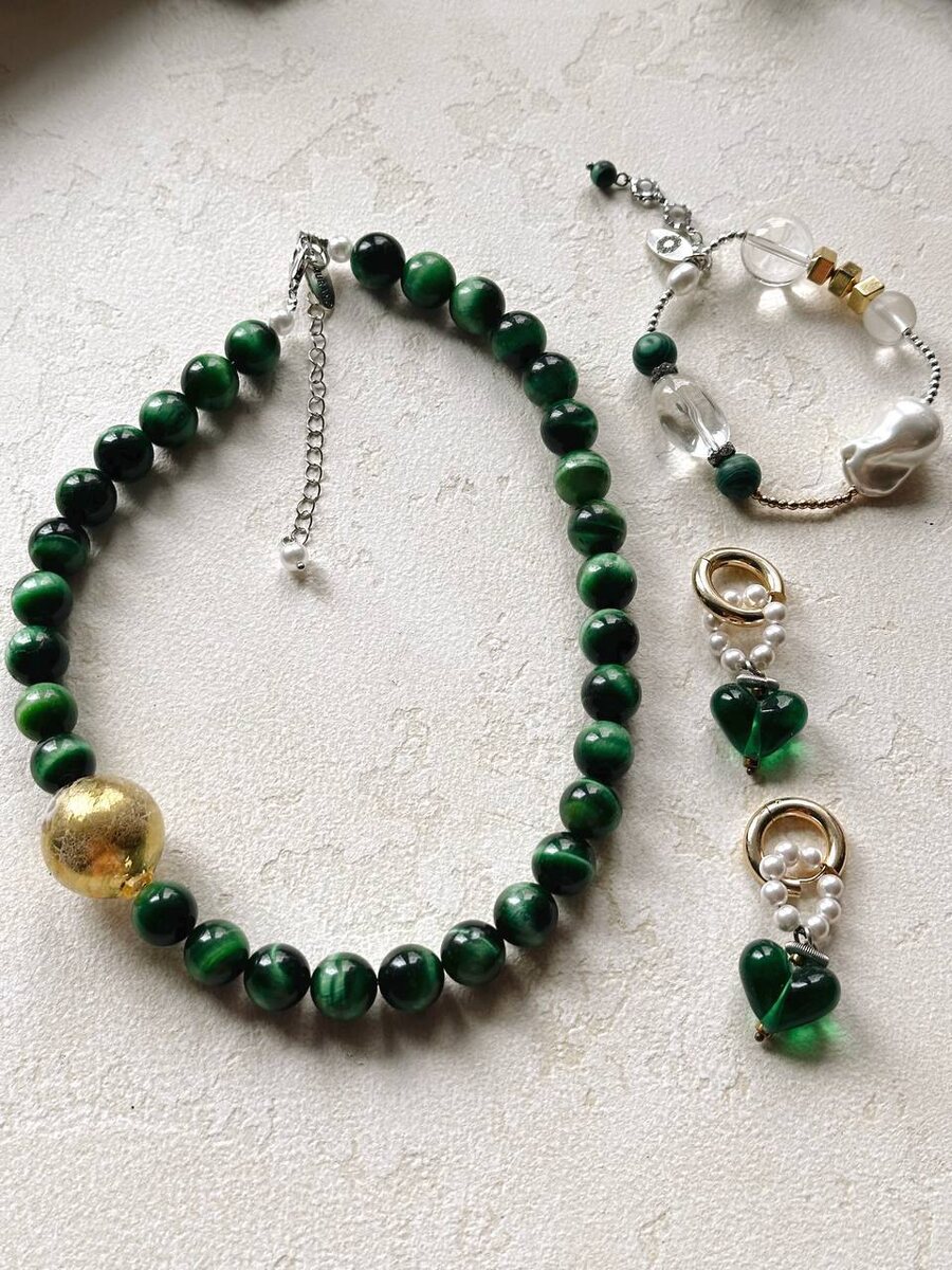 Зеленое колье 7500₽, хризоберилл с эффектом кошачьего глаза