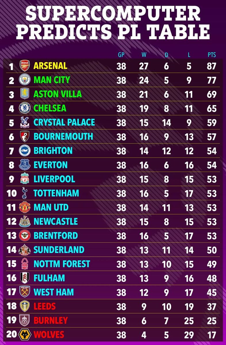 Суперкомпьютер Opta обновил свой прогноз по итоговой таблице Премьер-Лиги в сезоне 2025/26 📊