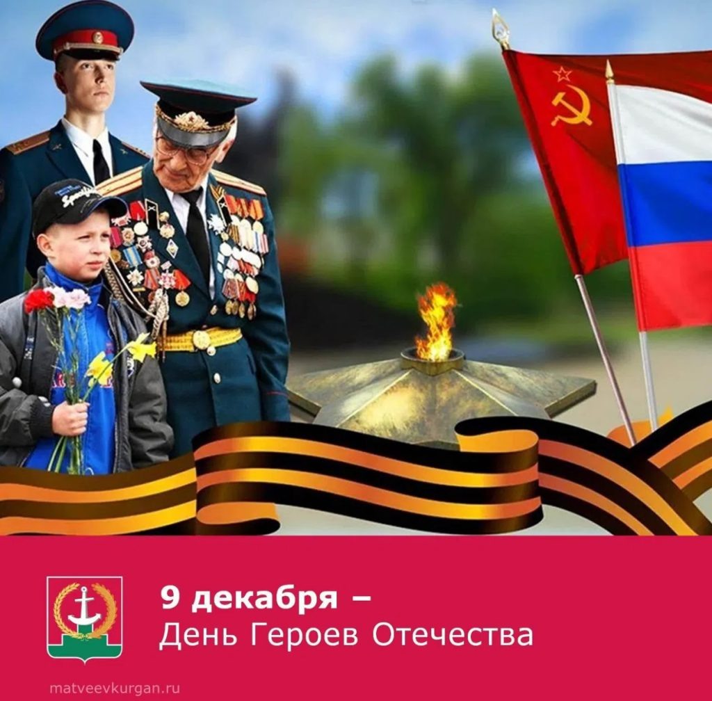 Уважаемые жители Матвеево-Курганского района! Ежегодно 9 декабря в России отмечается День Героев Отечества. В этот день мы чествуем всех Героев, удостоенных почетных государственных наград — званий Героев Советского Союза, Российской Федерации, орденов Славы и Святого Георгия, за плечами которых личный подвиг, заслуживающий общественного признания и уважения. «Есть такая профессия – Родину защищать!» – эта крылатая фраза символизирует важность и значимость службы Отечеству. На человека, который посвящает себя защите Родины, возлагается большая ответственность за всю страну и её граждан. Именно такие люди должны быть нравственным примером и ориентиром в жизни для подрастающего поколения. Благодаря их мужеству и самоотверженности мы сможем с уверенностью смотреть в будущее, гордиться своей страной и ее историей. Наши сегодняшние Герои – военнослужащие, которые с честью и достоинством выполняют боевые задачи в ходе СВО, защищают честь своих дедов и прадедов, являясь продолжателями их подв