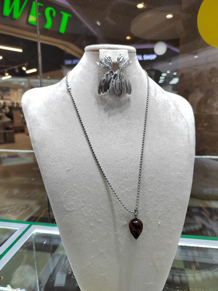 Серьги русалочий хвост) и подвеска из натурального камня