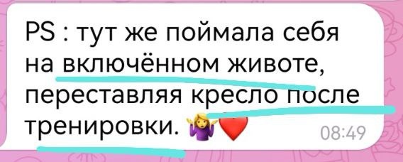 Вот об этом я говорю, когда утверждаю, что мои курсы - обучающие. Тренировки могут быть сколь угодно научно обоснованными и эффективными в теории, но если они не обучают тело жить: ходить, стоять, поднимать тяжести, сидеть, танцевать, залезать в автобус, перепрыгивать через лужу - грош им цена. 24 часа.. Ну ок, 12-16 часов нашей жизни каждый день влияют на тело горааааааздо больше, чем любая самая правильная тренировка. В итоге можно в зале делать все идеально, и все равно иметь вываленный живот, дряблую попу и вялые ягодицы. А если тренировка имеет влияние на все остальное движение в вашей жизни, вот тогда Вы будете красивой, и достаточно тренироваться 20 минут, чтобы этот навык поддерживать. А всю остальную красоту тело будет получать из обычной жизни. Прикольно, да? Приходите в клуб. Там все именно так.