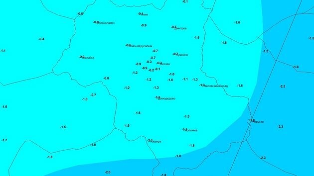 Минувшей ночью впервые с начала календарной зимы температура воздуха в столице опустилась ниже нулевой отметки. По данным базовой метеостанции города ВДНХ, минимум составил −0,3°. На других метеостанциях мегаполиса было от −0,1° на Балчуге до −1,2° в Бутово. Отрицательные температуры наблюдались и на всей территории Московской области, а самой холодной точкой Подмосковья стала Кашира, где минимальная температура составила −2,1°. Ближайшей ночью в регионе вновь заморозки – в Москве 0…−2°, по области 0…−3°. Следующей ночью преобладающий фон температуры будет близок к 0°, а в ночь на пятницу температура останется положительной. Ну а суббота отметится более сильными морозами, и ночная температура впервые с начала месяца опустится к декабрьской норме, а в воскресенье ожидается даже чуть ниже неё. Фото: © Центр ФОБОС