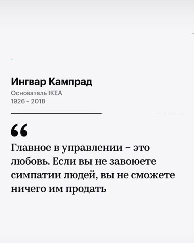Бизнес начинается не с продукта, а с отношения к людям. Именно поэтому у Кампрада «главное в управлении – любовь» звучит как рабочая бизнес‑инструкция, а не как мотивационный плакат. - Любой воронкой, скриптом и ИИ можно временно «выжать» деньги, но без доверия и симпатии люди не возвращаются и не рекомендуют. - Симпатия = уважение времени, прозрачные правила, нормальный сервис, адекватная коммуникация, а не только «добренький, условно-вежливый тон». - Управление любовью – это когда владелец честно выбирает: «я строю систему, где клиенту проще жить и зарабатывать», а не «как бы ещё его дожать». Спросите себя: 💚 если завтра отключить всю рекламу, к вам придут хотя бы 30–40% за счёт рекомендаций и повторных покупок или всё мгновенно схлопнется? 💚 Ваши клиенты чаще пишут «спасибо, было полезно» или «где мой заказ/доступ/ответ»? 💚 Внутри команды (если она есть) люди хотят делать лучше клиенту или заняты тем, как от него отгородиться? 💚💚💚💚💚💚💚💚💚 Рынок перегрет экспертами,