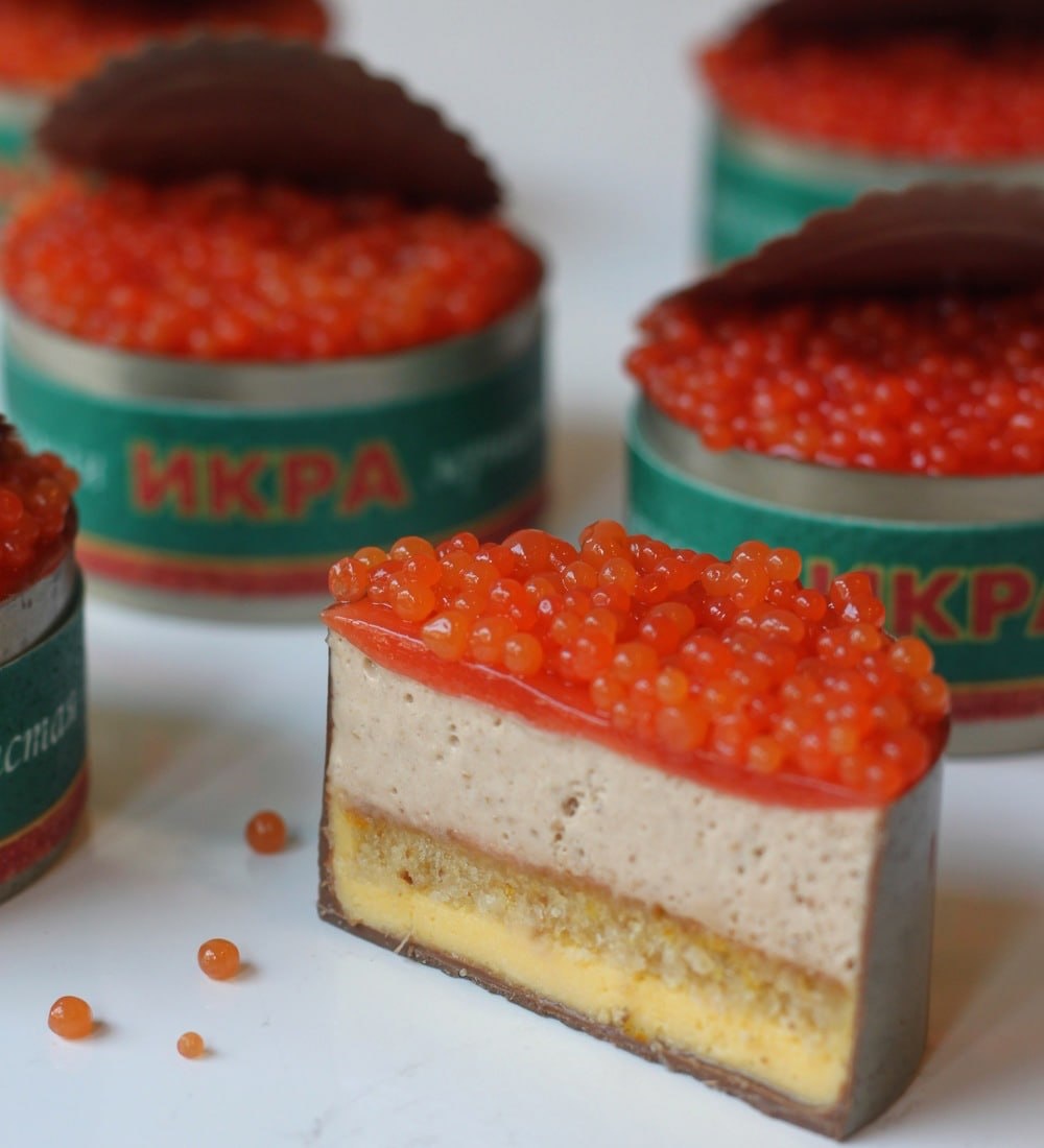 🎄Какой же новогодний стол без красной икры?! Но этот «деликатес» разыграет всех ваших гостей в праздничную ночь! Ведь на самом деле это будет… пирожное с кремом и желейными шариками! 😮 🍰 Десерт готовится в несколько этапов — сначала масляный бисквит, затем сливочный крем и клубничный конфитюр. Понадобятся еще желейные шарики «Мармелатье» вишня 4-6 мм и этикетка из сахарной бумаги. Приступим? Ловите рецепт от технологов Solpro! 🥮Ингредиенты для масляного бисквита: Мука пшеничная в/с — 160 г Сахар-песок — 100 г Масло подсолнечное высокоолеиновое Solpro — 50 г Молоко цельное 2,5 % жирности — 50 г Меланж — 200 г Паста бисквитная Solpro 38002 — 15 г Разрыхлитель — 5 г Соль — 2 г ✅ Смешать все ингредиенты в миксере, затем взбить на высокой скорости в течение 10—15 минут с помощью венчика ✅ Распределить массу тонким слоем по пергаменту 2—4 мм ✅ Выпекать 7-10 минут при температуре 160—170°С 🧁Ингредиенты для сливочного крема: Маргарин для крема Solpro 84 % (33846) — 260 г Сахарная пу