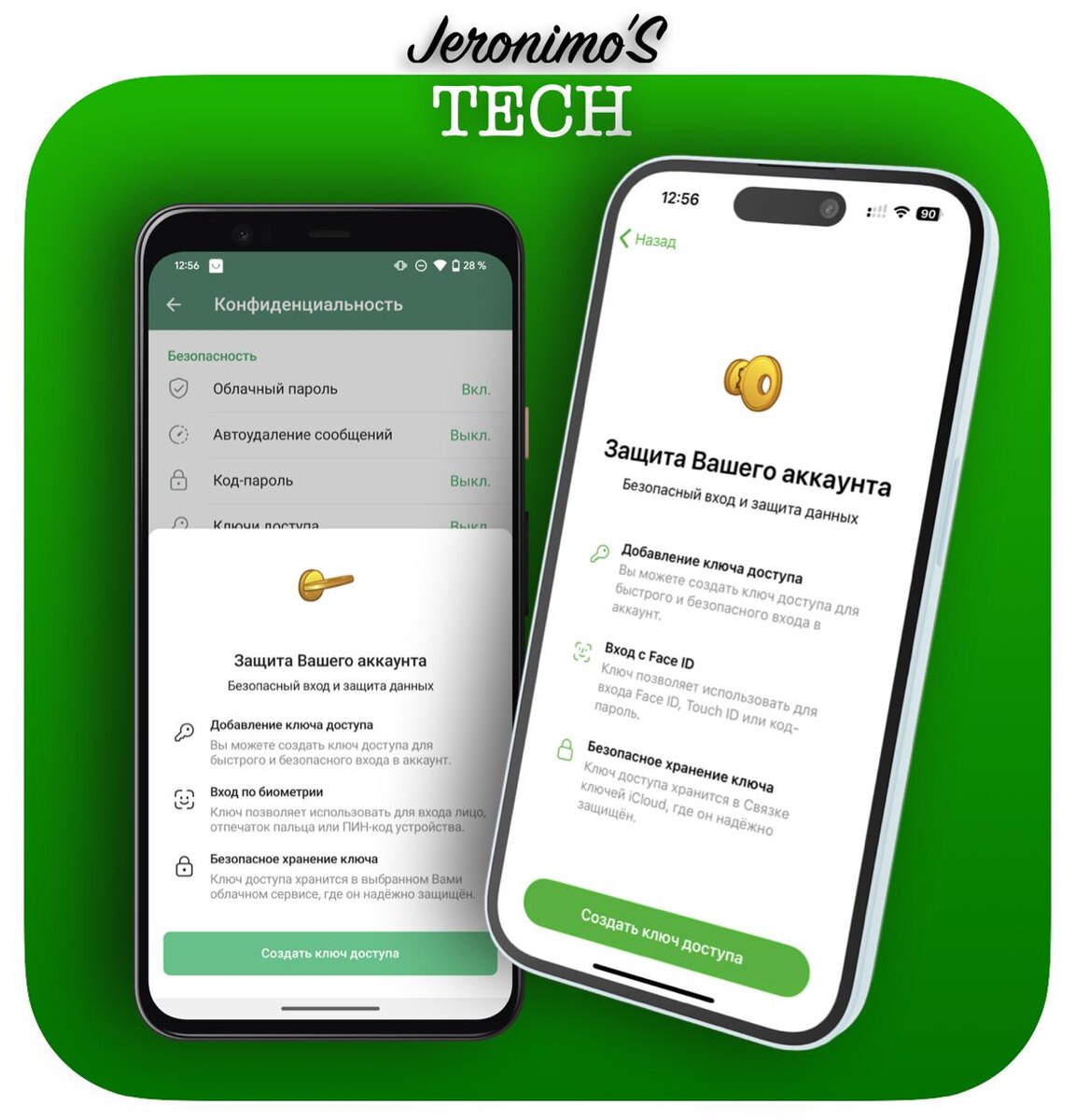 ⚡️В Telegram появились ключи доступа (Passkey) специально для россиян Наверняка вы читали в СМИ, что российские операторы не доставляют СМС-коды от Telegram. Это работает не всегда и не везде, но коды действительно могут не приходить. В качестве альтернативы предлагалось добавить email, а теперь появился еще один вариант специально для российских номеров телефонов. Найти его можно в настройках Telegram, в разделе «Конфиденциальность». Пункт «Ключи доступа» позволяет привязать к аккаунту Telegram уникальный ключ вашего Apple ID или учетки Google, и авторизоваться через него безо всяких кодов. Если Passkey почему-то не будет доступен, возможность получить код сохраняется. Я сам Passkey пока не подключал, но в целом рекомендовал бы добавить всё — и email, и ключ. Любопытно, что в аккаунтах других стран Passkey отсутствует. @jeronimos_tech