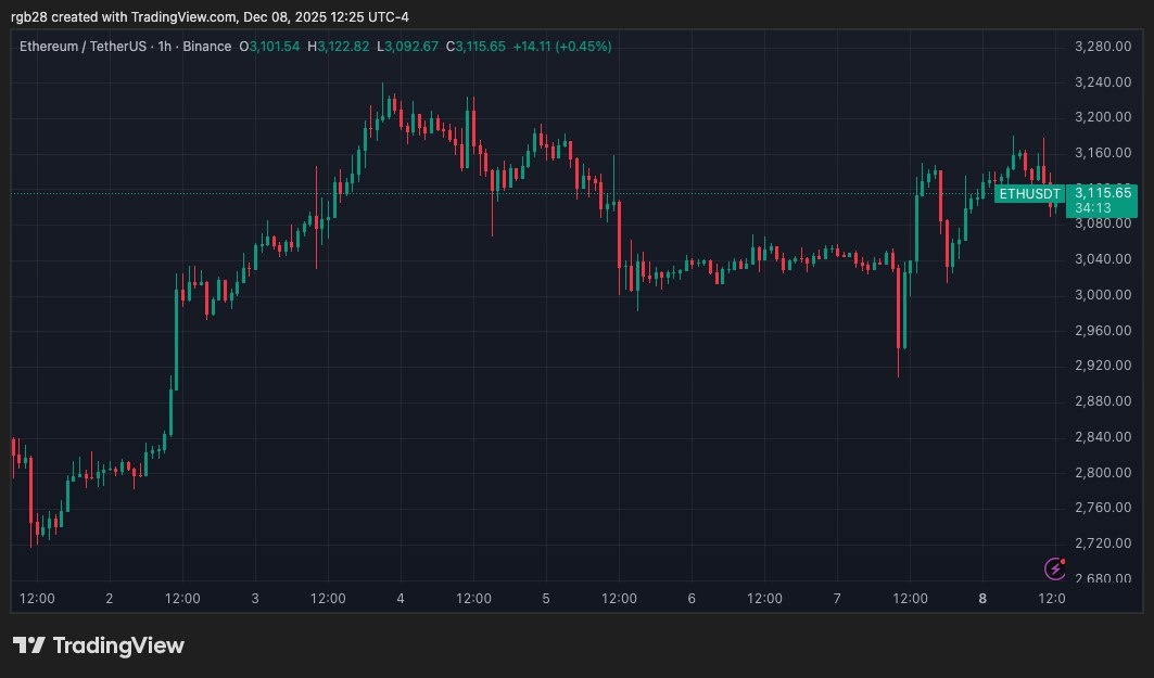 🎯 Вся Внимание На Эфириуме: Цена Пытается Пробить Ключевую Резистентность, Пока BlackRock Подает Заявление На Стейкованный ETH ETF Цена: $3 180 (+≈3% ↗️) Цена Эфириума недавно достигла $3 180, пройдя через два‑месячное сопротивление 3 120‑3 130, и теперь держится на уровне $3 114, рост на 13,7 % по недельному графику. Запуск заявленного BlackRock стейкованного ETF может усилить спрос на ETH, предлагая более низкую стоимость дохода через staking 70‑90 % активов. Если ETH удержит $3 120‑$3 130 как поддержку, возможен пробой горизонтальных уровней $3 200‑$3 300, что знаменует начало нового фазы роста. 📊 Ключевые моменты: - BlackRock подала на стейкованный ETH ETF 5 декабря, став первым крупным управляющим с этим продуктом. - Фонд стремится стейкать от 70 % до 90 % ETH, распределяя награды минимум раз в квартал. - Цена находится на границе ключевой линии сопротивления, при удержании может стать барьером для дальнейшего роста.