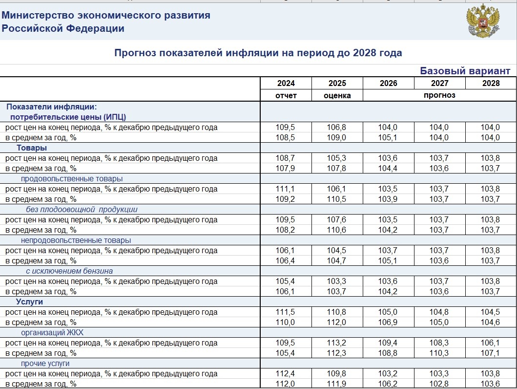 Умеренный (базовый) сценарий берёт середину прогнозов и реальностей: инфляция 4–5% и умеренный рост зарплат/энергетики — итоговый рекомендуемый рост тарифов в диапазоне 6–8%.