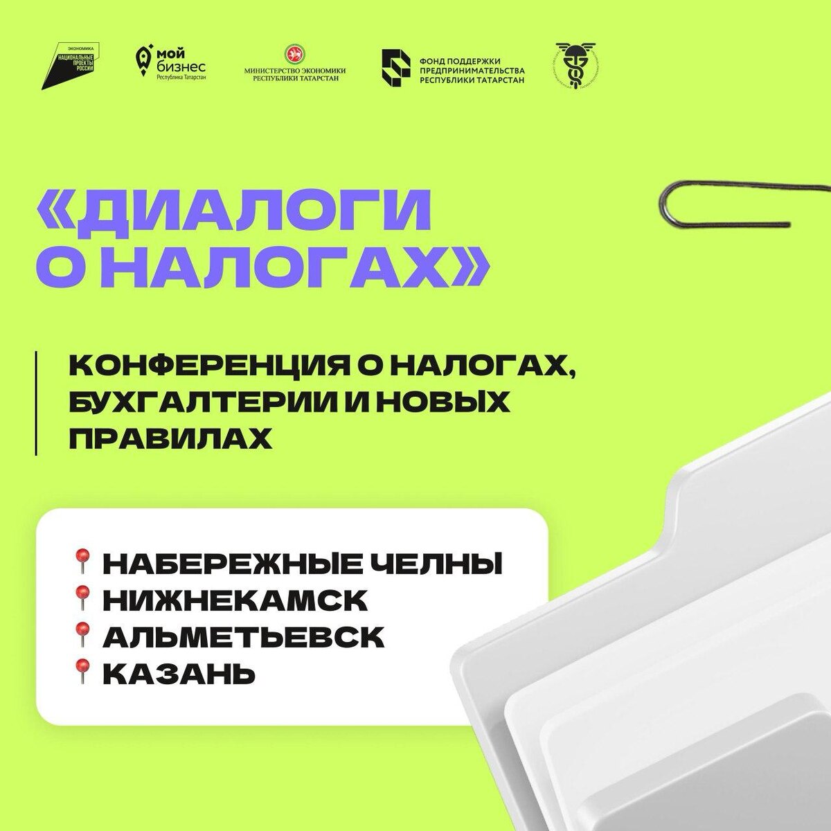 2026 год будет включать в себя ряд изменений для предпринимателей в сфере финансового и налогового регулирования. Фонд поддержки предпринимательства РТ совместно с Министерством экономики Республики Татарстан и Торгово-промышленной палатой РТ организует конференцию, которая поможет вам быть на шаг впереди! 🌟 На конференции вы сможете: • Узнать о ключевых налоговых изменениях и новых подходах в налоговом контроле. • Получить практические инструменты для управления бизнесом в новых реалиях. • Обсудить актуальные вопросы с ведущими экспертами и получить ответы на свои запросы. 🌟 Спикеры: • Елена Киямова - руководитель и учредитель Российского Агентства ГлавБухЭксперт , член закрытого международного клуба общероссийской общественной организации Деловые женщины и мужчины России , эксперт по налогам с опытом более 27 лет • Эмиль Хисматов - заместитель директора департамента развития предпринимательства Министерства экономики Республики Татарстан. • Сергей Карпухин - заместитель предс