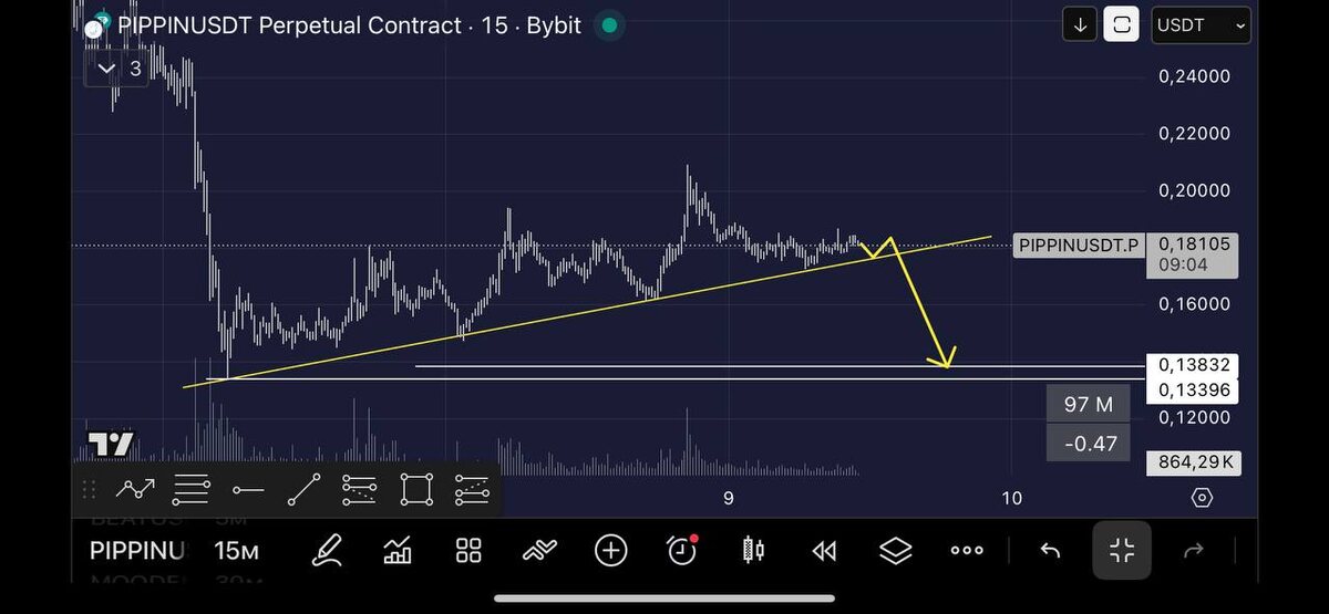 Всем доброго утра! Наблюдаю за монетой второй день, жду пробоя наклонного уровня. Тейк буду ставить в районе 0.13832.