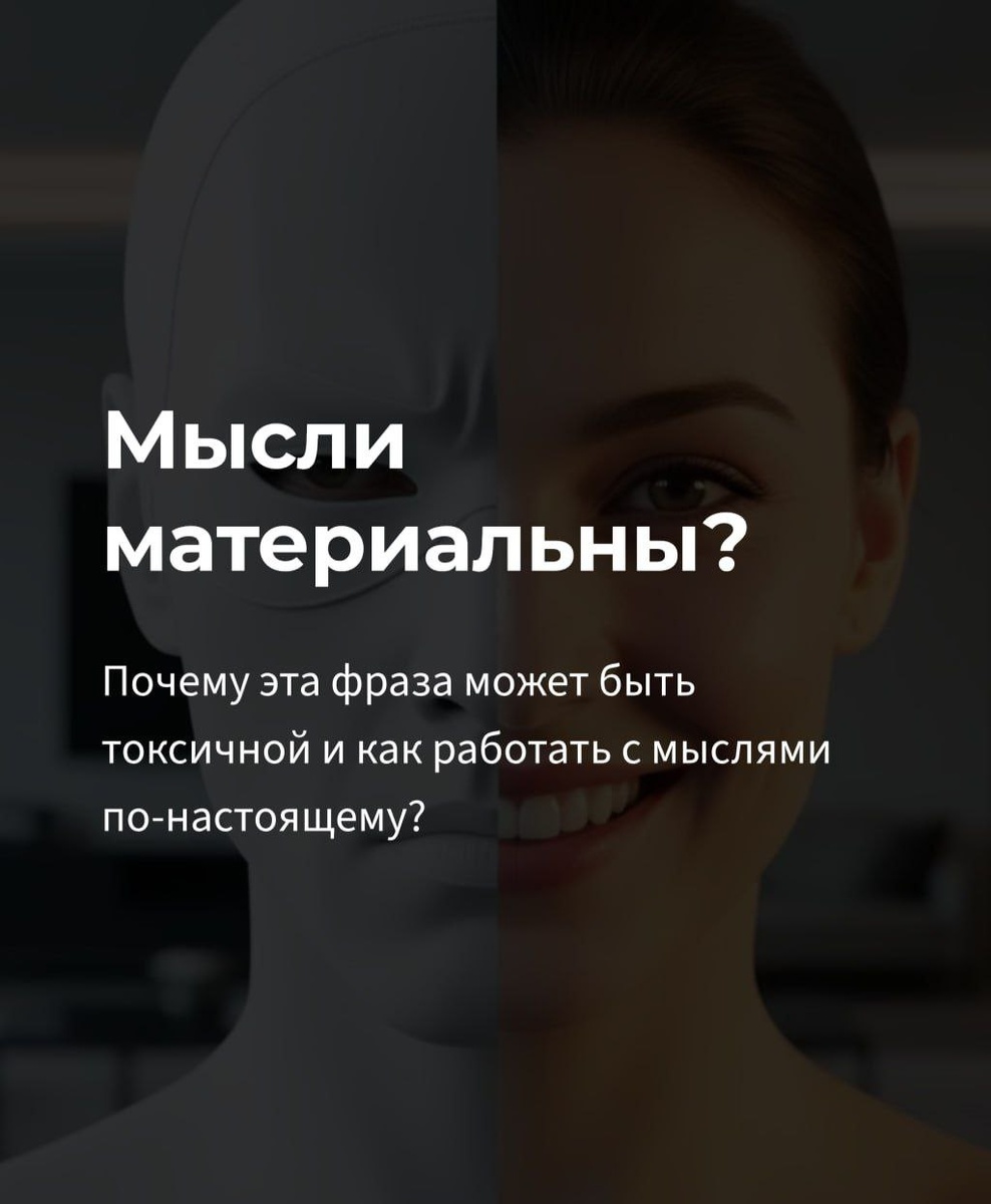 СТОП. Прежде чем говорить «не думай о плохом», прочтите этот пост. Почему эта фраза — психологическое насилие и что делать вместо запрета мыслей. «Мысли материальны?» — самая токсичная фраза из поп-психологии. Она заставляет вас винить себя за кризисы, неудачи и даже чужое хамство. Напмсала о том, почему этот миф опасен и как работать с мыслями по-настоящему. 🚫 Листай карусель. Не знаю как вас, но меня бомбит когда мне говорят, что я притянула там чего-то, особенно болезни... Бесит Что меня сподвигло написать этот пост? У сына гной в лимфоузле по результатам УЗИ, а хирург на мои понятные вопросы вместо того, чтобы проконсультировать меня, ответил о том, что мысли материальны, и посоветовал не придумывать плохое. Я разозлилась. 🤬 Имею ли я право злиться на слова хирурга? ДА! Могу ли я вывалить на него свою злость? НЕТ!