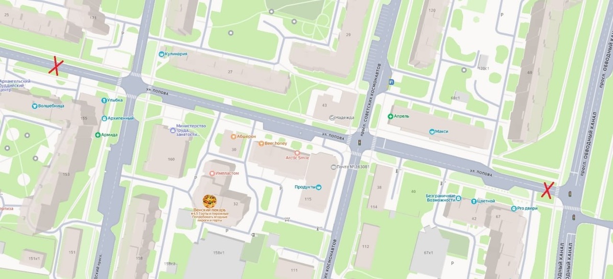 В Архангельске до 20.00 12 декабря продлевается перекрытие для движения транспорта улицы Попова в районе дома №26
