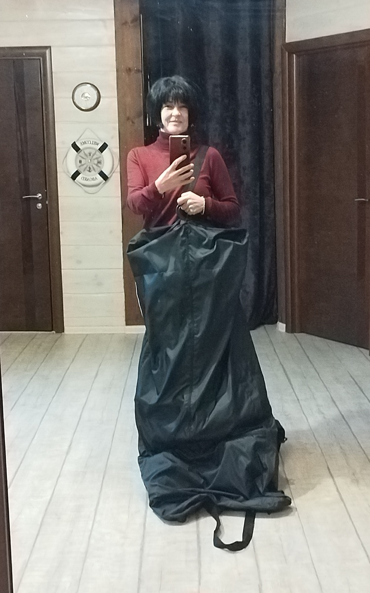 Созрела! Я приобрела портплед для костюмов! Раньше мы перевозили костюмы в обычных чехлах: утром в машину на крючок повесил или аккуратно положил на сиденье, по прибытии достал и донёс либо до номера, либо до раздевалки. Но когда турнир проходил в Тимирязев центре, то припарковаться рядом - не вариант, стоянки под завязку. Пришлось оставить машину у гостиницы, а ближайшая - в паре километров, и под дождём, ветром, по грязным улицам тащиться с сумками и чехлами наперевес. Страшно неудобно. Даже когда на стойке регистрируешься, то приходится костюмы либо партнёру отдавать, либо на пол складывать, чтобы руки освободить. А у портпледа есть ручки, доступно два или три сложения, повесил на плечо- удобно. Ткань плотная, непромокаемая. Костюмы не помнутся, внутри кольцо для крепления вешалки. А ещё там два отделения для обуви. Раньше мне приходилось постоянно проверять: взяла пакет с обувью, не забыла? Сейчас всё " в одном окне". Если честно, то заказала этот портплед на новый год, ссылку