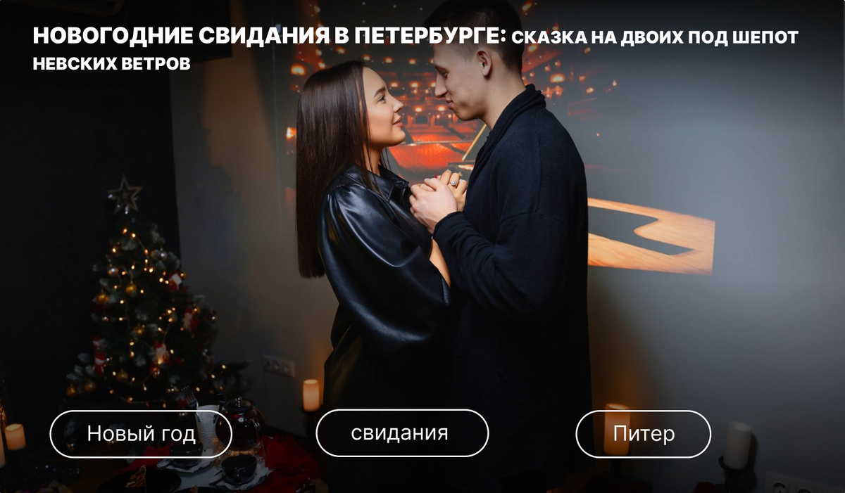 Петербург зимой – это словно ожившая рождественская открытка. Сверкающие огни, хрустящий снег под ногами и морозный воздух, наполненный предвкушением чуда. А уж если рядом любимый человек, то градус волшебства способен зашкалить! Но куда же пойти, чтобы создать ту самую незабываемую новогоднюю атмосферу? Забудьте о банальных посиделках в ресторане – мы предлагаем кое-что погорячее, чем глинтвейн! 1. Классика с искрой: Прогулка-квест по парадным местам Идея: Составьте свой собственный маршрут по самым знаковым местам Петербурга, добавив к нему элементы квеста. Загадайте загадки с отсылками к истории города, к вашим личным воспоминаниям или просто забавным фактам. Локации: Невский проспект, Дворцовая площадь, Марсово поле, набережная реки Фонтанки. Фишка: Заранее спрячьте небольшой подарок в одной из точек маршрута. Победа в квесте – это не только новые впечатления, но и приятный сюрприз для любимого человека! А чтобы согреться, запланируйте остановку в уютной кофейне с видом на засне