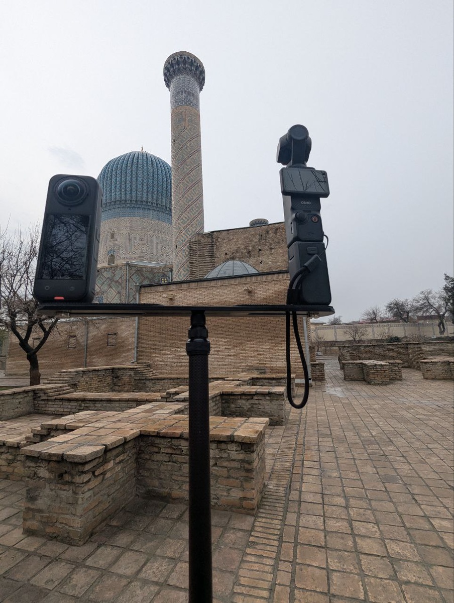 Insta 360x5 для контекста и DJI Pocket 3 для деталей. Камеры 360 имеют очень низкое разрешение и значительные искажения. Х5 самая лучшая 360 градусная камера на данный момент. Не сравнивать с LadyBug 5, у неё другое название, и картинка не лучше в прямом сравнении. Pocket 3 просто прекрасна. Стабилизация механическая, а значит не отрезает кадр, и не искажает оптические параметры, как это делают топовые телефоны с таким же качеством картинки. Суть экспериментов, в проверке пригодности карманного решения для быстрой 3D съёмки.