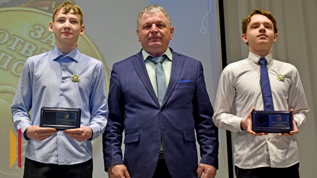 В рамках торжественного мероприятия, посвященного Дню Героев Отечества, проведенного председателем Следственного комитета Российской Федерации Александром Бастрыкиным, руководитель СУ СК России по Воронежской области Михаил Селюков вручил ведомственные награды и памятные подарки детям, проявившим героизм и самоотверженность в спасении жизни и оказании помощи тем, кто в ней нуждался. Учащимся Калачеевской средней школы №6 Кириллу Зырянову и Денису Харламову были вручены ведомственные медали «За высокую гражданственность». И это не первые награды за их мужественный поступок. После происшествия им были вручены грамоты и знаки «Благодарность от земли Калачеевской». – Вы – настоящие герои своей страны, спасибо вам большое за проявленное мужество и активную гражданскую позицию, – подчеркнул Михаил Селюков и пожелал ребятам успехов в будущих начинаниях. Также руководитель регионального следственного управления СК России выразил слова благодарности родителям подростков, способных на такой само