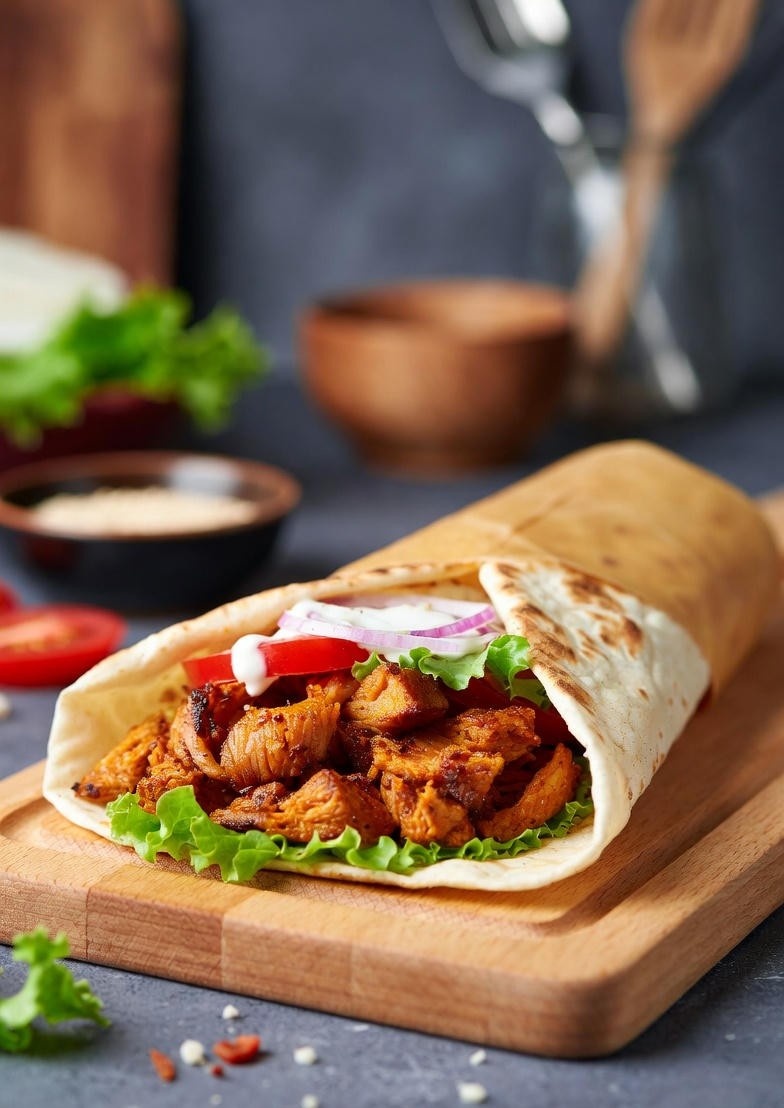 Порций: 4 большие или 6 нормальных. Ингредиенты (на 4–6 шт): Лаваш тонкий армянский — 4–6 листов (большие) Куриные бёдра без кости — 800 г Капуста белокочанная — 200–250 г Помидоры — 2–3 шт. Огурцы свежие или солёные — 2 шт. Лук репчатый — 1 большая луковица Чеснок — 4–5 зубчиков Майонез — 4–5 ст.л. Сметана или натуральный йогурт — 4–5 ст.л. Кетчуп или томатная паста — 2–3 ст.л. Соль, чёрный перец, зира, кориандр молотый, сладкая паприка Растительное масло для жарки Пошагово: Мясо