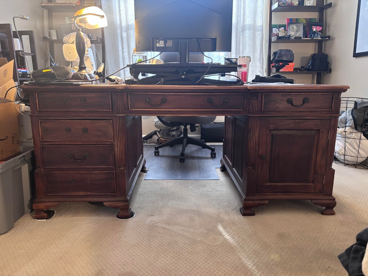 Загадочный Chesterfield Partner's Desk: Что скрывают его цифры? Предположительно, у меня английский Chesterfield Partner's Desk из красного дерева. Он состоит из трех частей: двух тумб-пьедесталов и столешницы с кожаными вставками. Стол отличается ручной работой и характерными деталями, такими как соединения типа «ласточкин хвост» и кованые гвозди. Единственные обнаруженные маркировки – это цифры '998' или '866' на дне некоторых ящиков. Есть ли у вас предположения, что могут означать эти числа? И, что еще важнее, какая может быть рыночная стоимость такого стола? #антиквариат #партнерскийстол #Chesterfield #красноедерево #антикварнаямебель